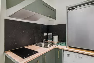 Жилые комнаты оснащены полностью оборудованными кухнями, специально предназначенными для интенсивного аренда. Современные и функциональные ванные комнаты дополняют интерьер.