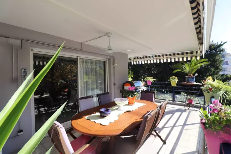 Эта квартира расположена в красивой резиденции с бассейном и зеленым парком, очень хорошо ухоженной. Квартира предлагает просторные помещения: большая светлая гостиная площадью более 28 м² открывается на великолепную террасу площадью 26 м², утопленную в зелени и залитую солнцем. ☀️ Отдельная кухня также выходит на террасу. Две спальни с встроенными шкафами, со вкусом оформленная душевая комната и отдельный туалет. Гараж с кладовой дополняет эту превосходную и угловую квартиру.