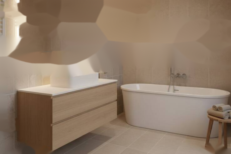 Высокое качество: плитка 60х60 см из керамогранита, обогрев/охлаждение воздуха с помощью теплового насоса, подвесные унитазы и другие преимущества.