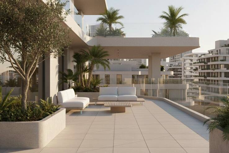 Апартамент T3 площадью 67 м². Просторная гостиная/кухня с выходом на большую террасу размером 28 м², ориентация на юг и запад. Прекрасные характеристики: керамическая плитка 60x60, система обогрева и охлаждения с тепловым насосом, подвесные унитазы.