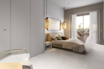 Этот престижный адрес сочетает в себе близость и комфорт жизни: детский сад, школа и колледж в 5 минутах ходьбы, пляжи в 700 метрах, автомагистраль A8 менее чем в 10 минутах. Просторная вилла на крыше T5 площадью 115 кв. м.