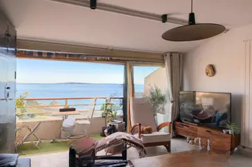 Приглашаем вас познакомиться с этой прекрасной трехкомнатной квартирой площадью 80 м² (64,03 м² по Carrez), расположенной на последнем этаже, с захватывающим видом на море и острова Лерин!