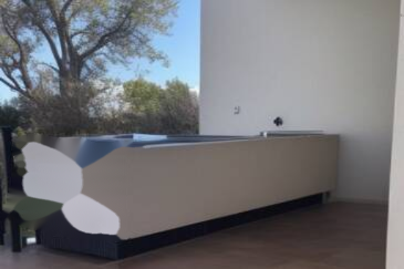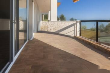 Основная терраса, доступная из гостиной, открывает прекрасный вид на море, предоставляя моменты незабываемого отдыха. Вторая терраса примыкает к оборудованной отдельной кухне.