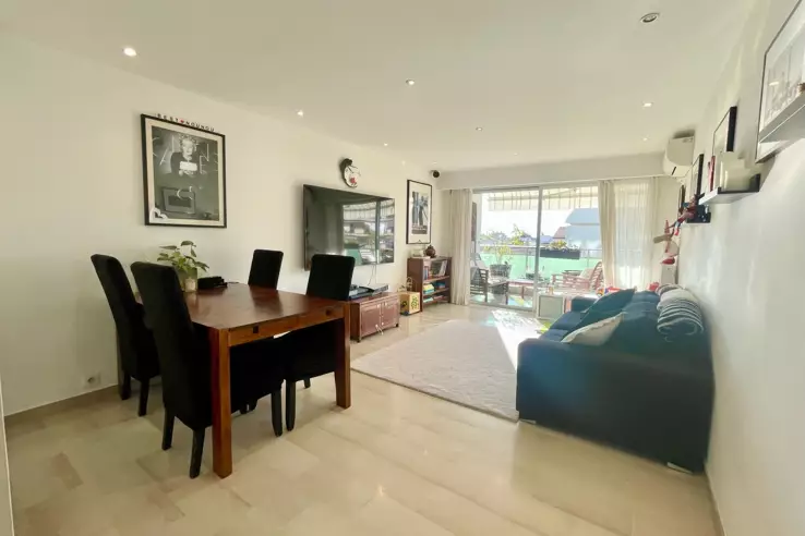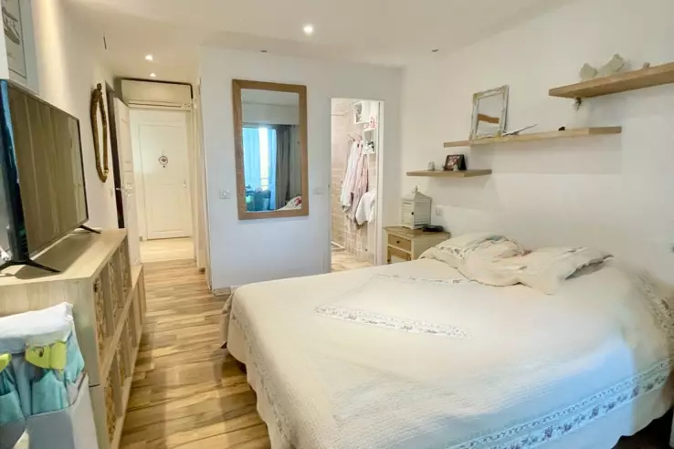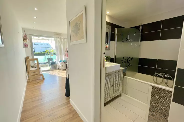 В Каннах, в районе Англе, в элитной резиденции с консьержем, вас ждет этот приятный и светлый 3-комнатный апартамент площадью 73 кв.м (67,69 кв.м по закону Карре + лоджия 6,13 кв.м). Расположенный на высоком этаже и проходной, он включает в себя вход, просторную гостиную с южной экспозицией, выходящую на уютную террасу площадью 11 кв.м, закрытую лоджию на север, отдельную кухню, две просторные спальни с гардеробами, ванную комнату, душ и отдельный туалет. Подземный гараж и подвал.