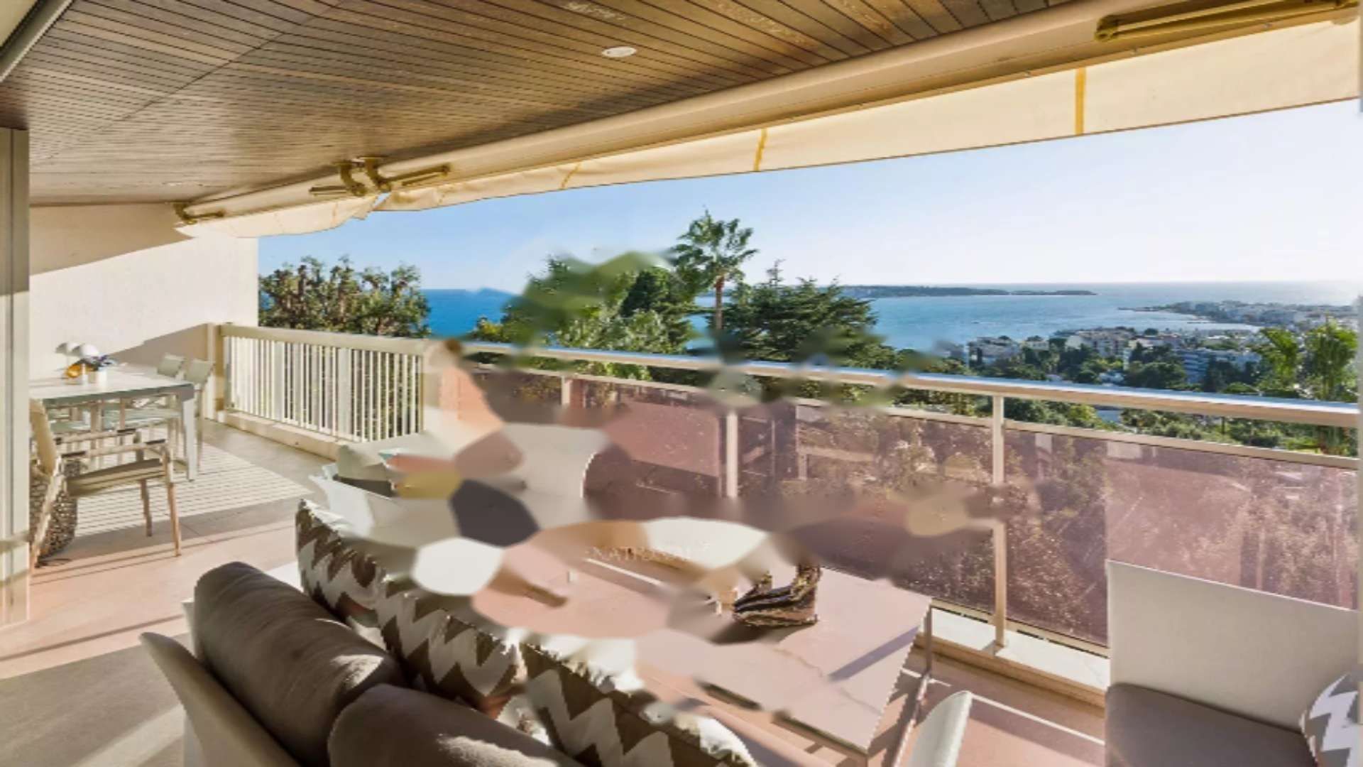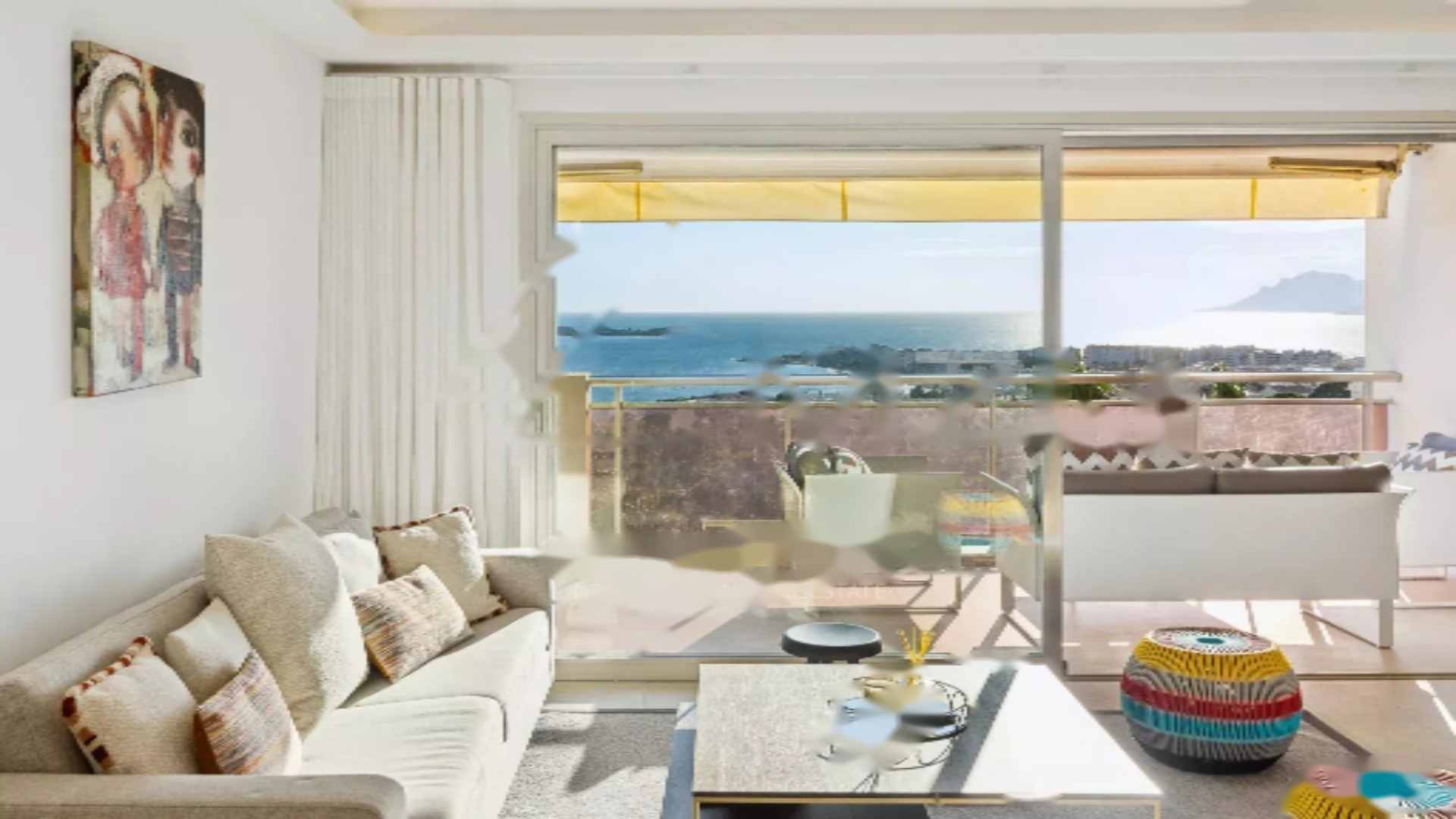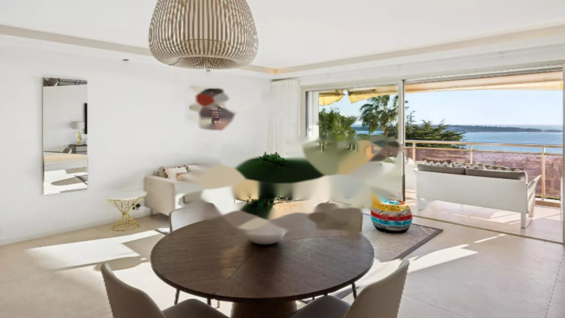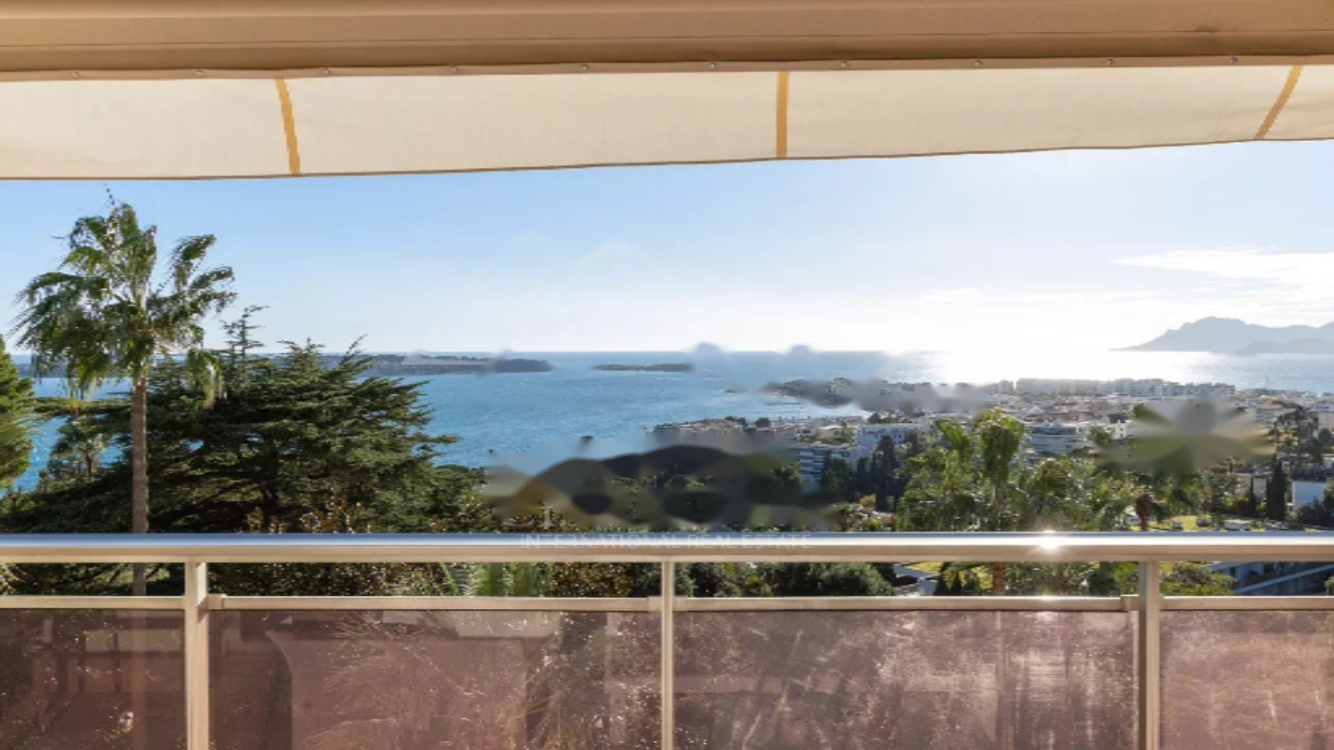 Сначала вас поразит просторная и светлая гостиная, выходящая на великолепную террасу около 23 кв. м. Наслаждайтесь захватывающим видом на Средиземное море, острова Лерин и Пальм-Бич, что идеально подходит для отдыха на свежем воздухе.