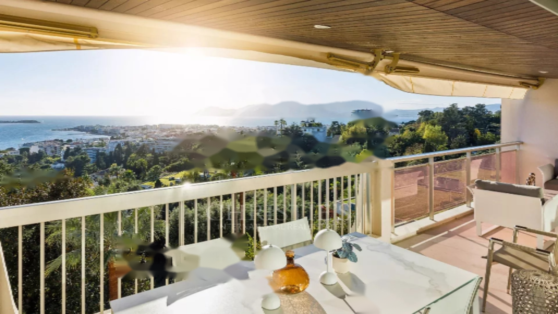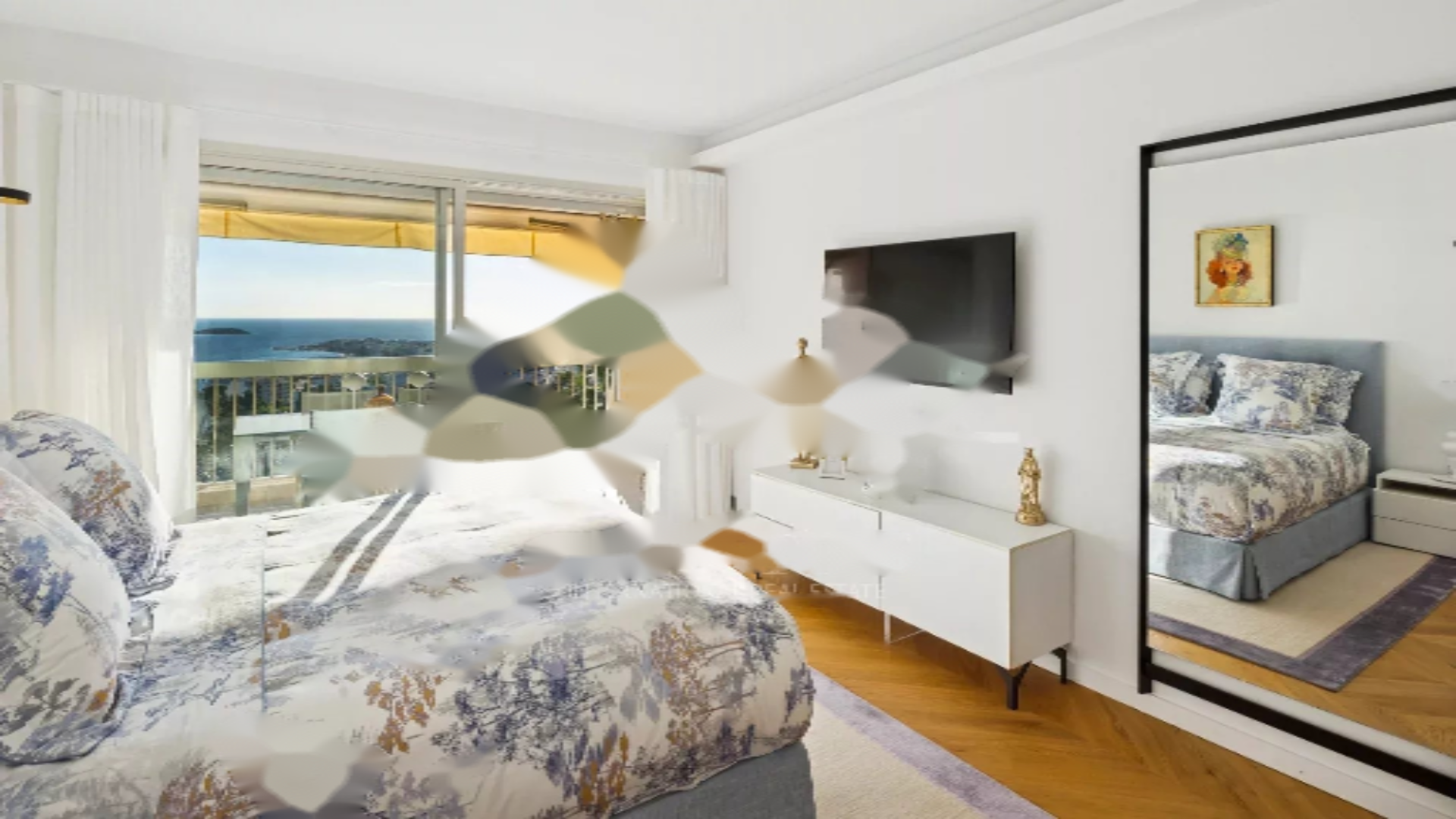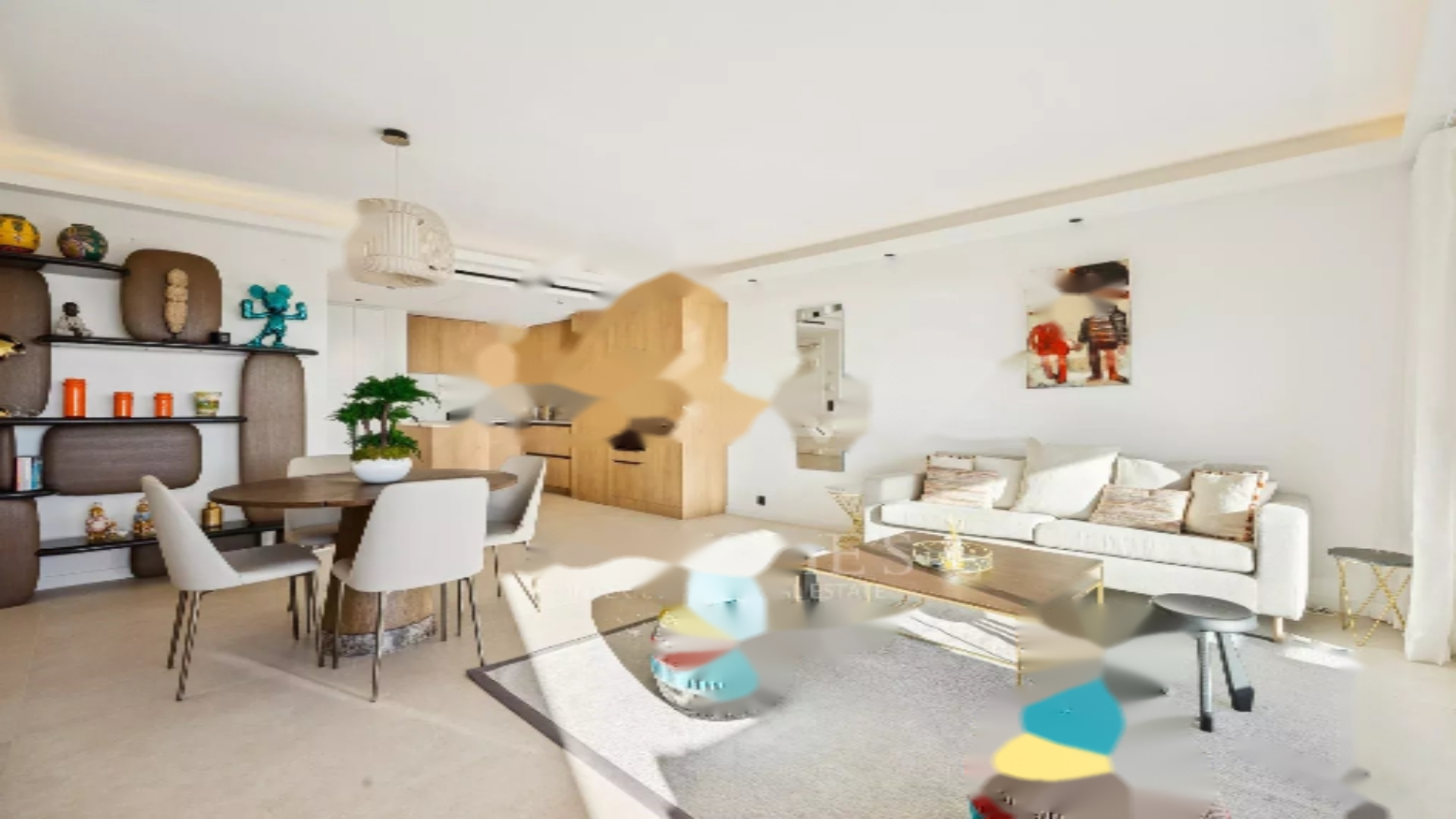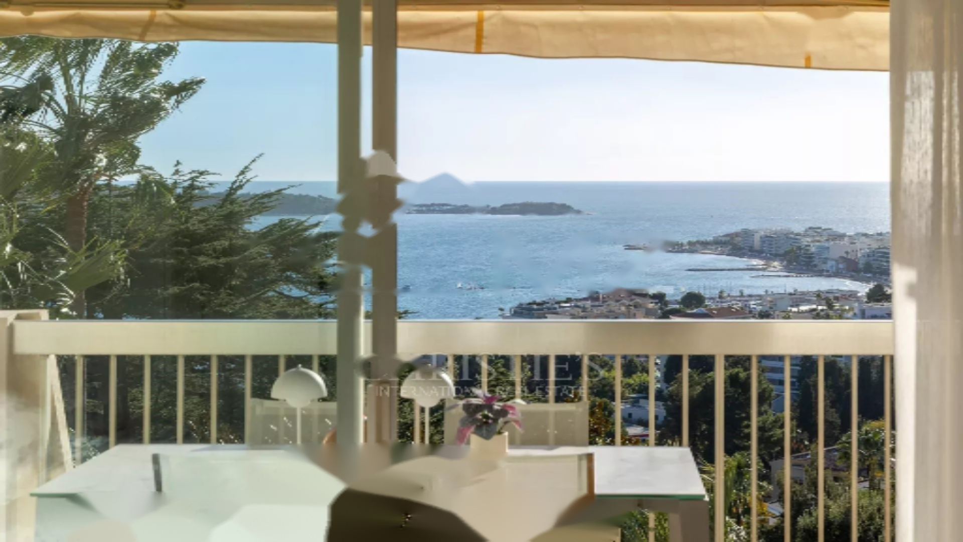 Сначала вас поразит просторная и светлая гостиная, выходящая на великолепную террасу около 23 кв. м. Наслаждайтесь захватывающим видом на Средиземное море, острова Лерин и Пальм-Бич, что идеально подходит для отдыха на свежем воздухе.