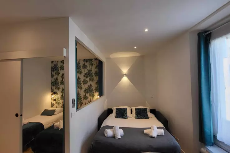 Расположенная в самом центре Канн, всего в нескольких шагах от Старого порта и Круазетты, эта квартира площадью 40 кв. м была умело перепроектирована и разделена на два независимых жилья: студию и двухкомнатные апартаменты, полностью отремонтированные с вкусом.