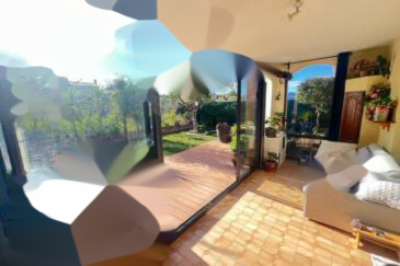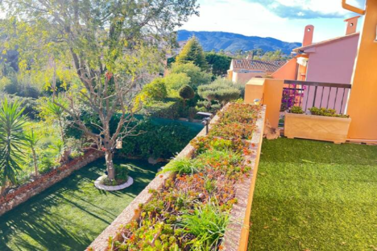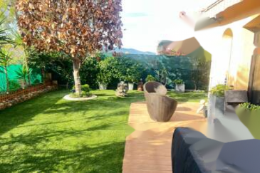 На втором этаже находятся три кондиционированные спальни, две из которых выходят на южную террасу (15 м²), ванная комната (умывальник, душ, туалет) и отдельная ванная комната (ванна, биде, умывальник). При доме также есть закрытый гараж площадью 13 м². Возможна покупка второго гаража по желанию. Общее состояние — хорошее. Двойное остекление. Недавно установлен новый кондиционер и тепловой насос для отопления. Горячая вода обеспечивается накопительным водонагревателем. Недавно произведен ремонт фасада. Очень тихо. ️