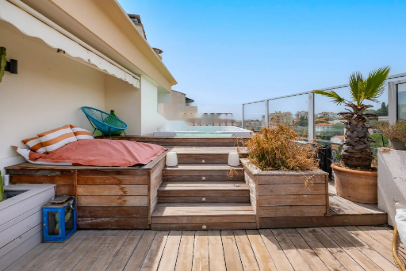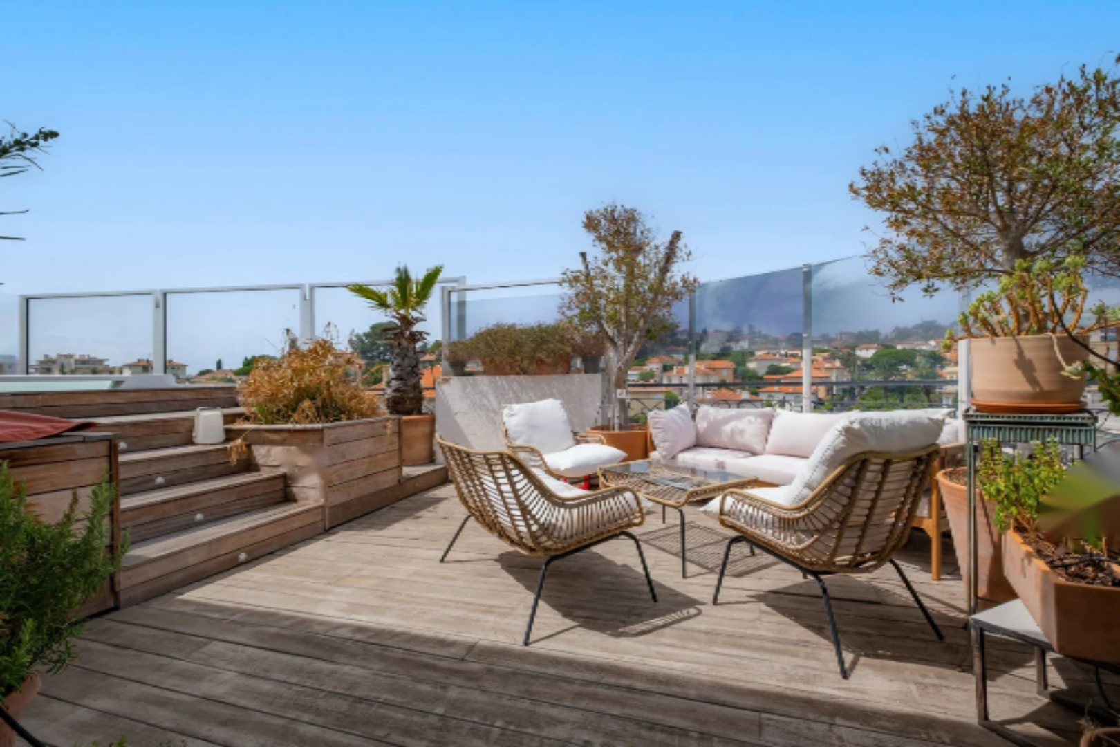 Наслаждайтесь жизнью в этом удивительном верхнем этаже роскошного здания, где великолепная светлость и панорамные виды не оставят вас равнодушными. Уникальное местоположение всего в нескольких шагах от магазинов, транспорта и всего в нескольких минутах от La Croisette.