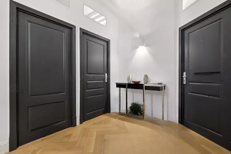 Есть возможность дополнить этот объект тремя студиями по 30 м², оформленными в том же высоком качестве. Комплекс, занимающий весь этаж, обслуживается частным лифтом и закрытым общим вестибюлем.