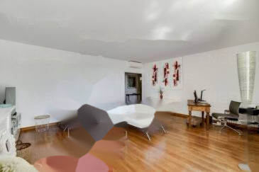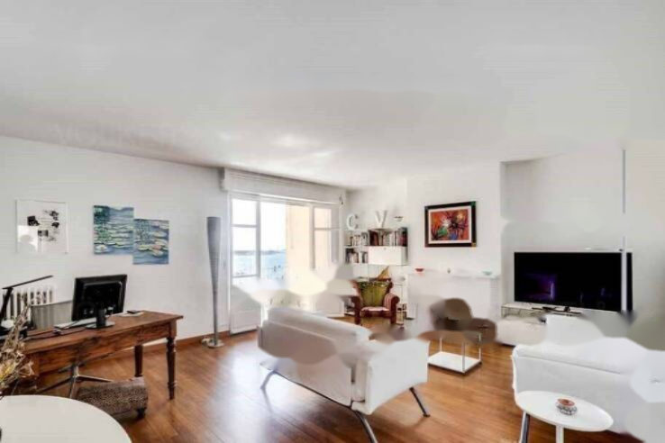 Зоны для сна и дневного отдыха четко разделены. Просторная гостиная-столовая с прекрасным видом на море и порт Канн, а также удобной террасой. Масивный дубовый паркет подчеркивает сохраненный оригинальный камин и безупречный декор.