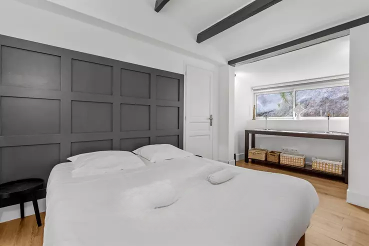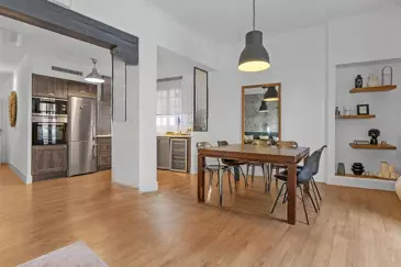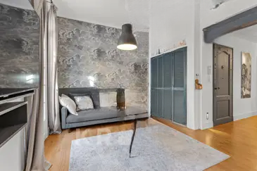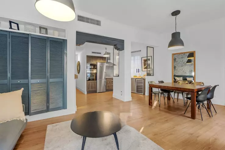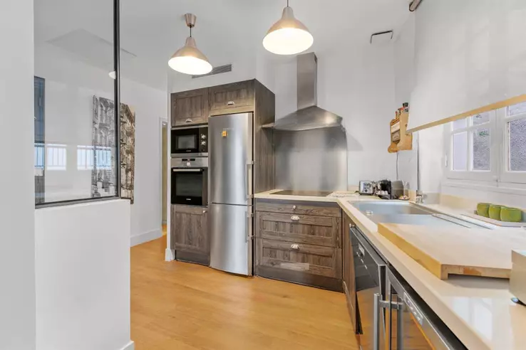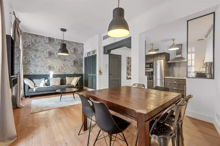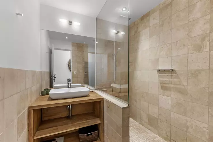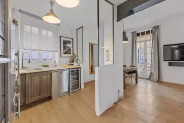 Трехкомнатная квартира площадью 66 м² расположена между старым портом Канн и историческим районом Сюке в Каннах, на первом и последнем этаже небольшой очаровательной копроприетированной собственности, в тихом месте, вдали от улицы. Она включает в себя оборудованную открытую кухню, гостиную, две спальни, две душевые комнаты, прачечную и балкон.