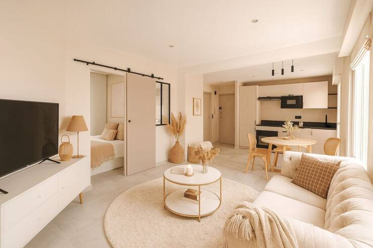 Продаётся очень красивая квартира типа T2 в престижном районе Канн, с жилой площадью в 36 м² и восточной ориентацией. Апартаменты включают уютное спальное место, душевую комнату, а также качественно оборудованную кухню.