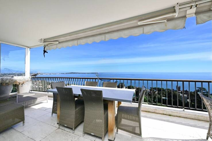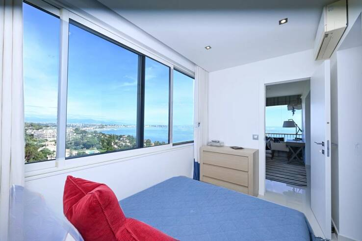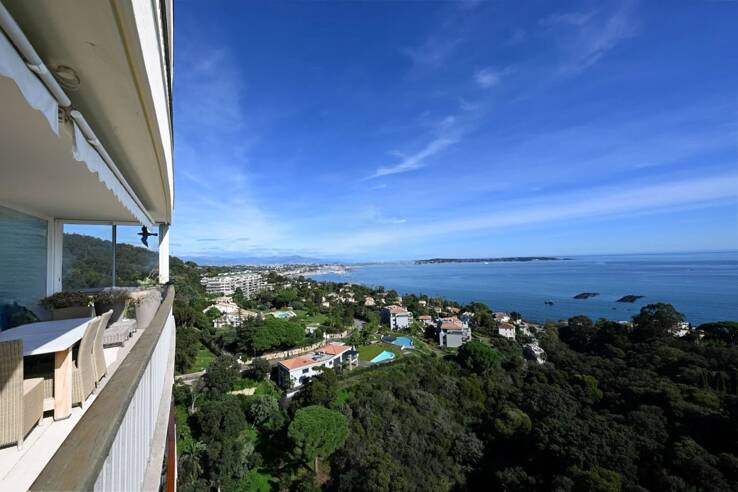 Обнаружьте этот исключительный апартамент на высоком этаже престижной охраняемой резиденции. Сразу при входе вас поразит захватывающий панорамный вид на острова Лерин и Средиземное море, идеальная планировка и элегантный декор.