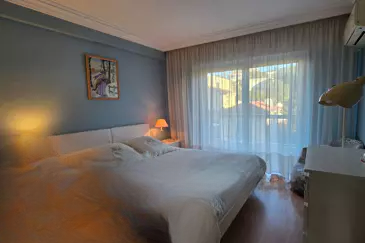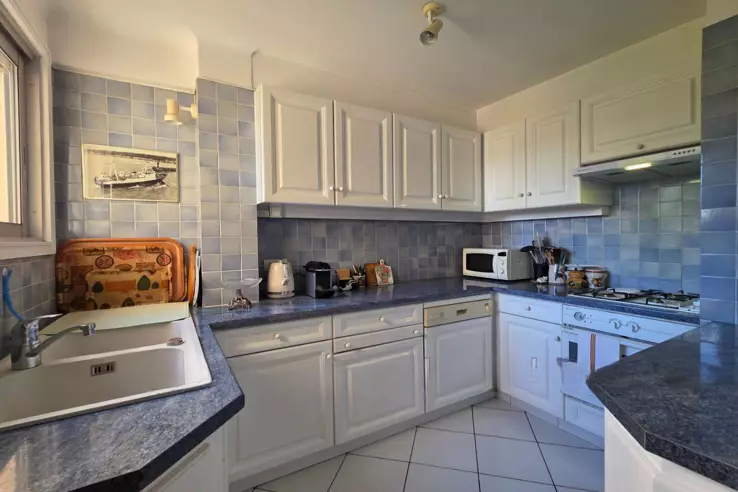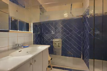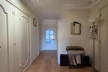 Каждая из двух спален снабжена встроенными шкафами и обе выходят на северный балкон протяженностью 8 м². Ванная комната с местами для хранения вещей. В подвальном этаже находятся закрытый гараж и кладовая. Есть возможность приобрести внешнее парковочное место. Климат хорош в целом, но нуждается в освежении. Удобно расположены все необходимые услуги и легкий доступ.