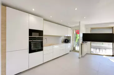 Апартаменты полностью отремонтированы и состоят из прихожей, гостиной, которая выходит на террасу с видом на море площадью около 20 м² (ориентация на запад), а также кухни и спальни с доступом на вторую террасу площадью около 27,21 м² (ориентация на восток). Ванная комната и туалет также входят в планировку.
