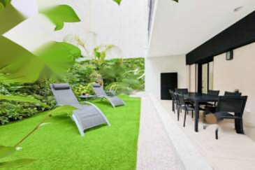 • Крытая терраса 20 м² с обеденным столом и сад 40 м²