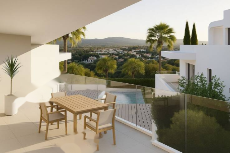 Квартира T2 площадью 44 м². Просторная комната выходит на террасу 8 м² с большой глубиной и открытым видом. Включает просторную спальню, ванную комнату и отдельный туалет.
