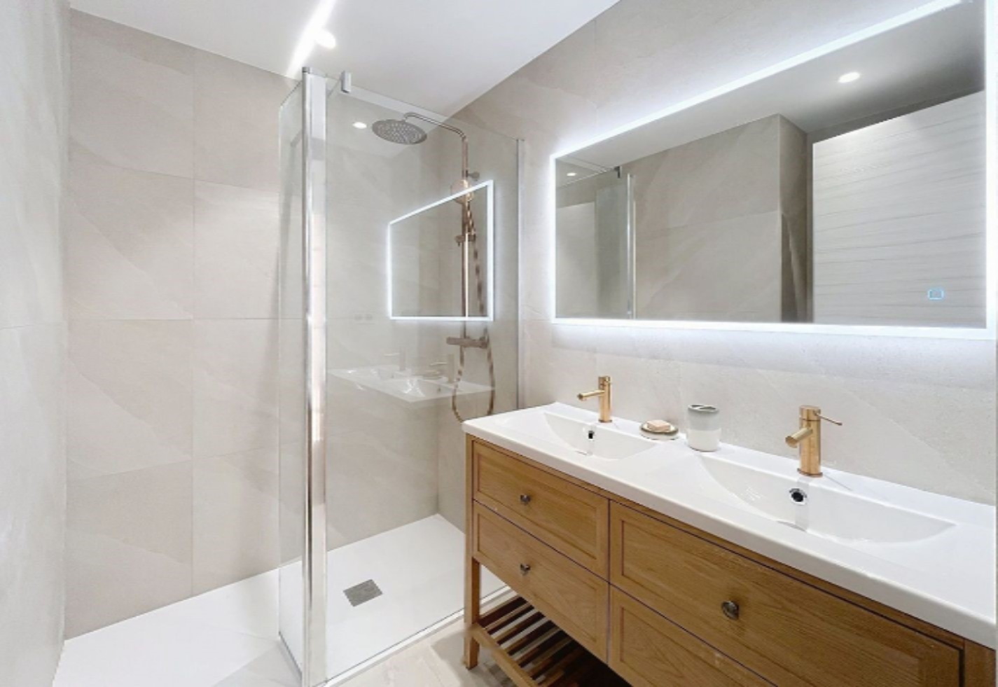 Квартира состоит из входа, просторной гостиной на юг с полностью оборудованной американской кухней, из которой есть выход на южную террасу, двух спален, каждая из которых имеет собственную ванную комнату и гардеробные. Недавно отремонтирован и продается с мебелью. ️