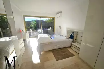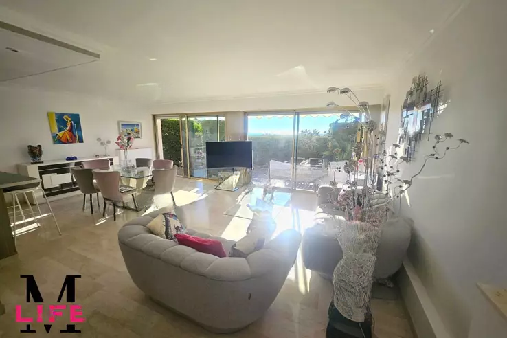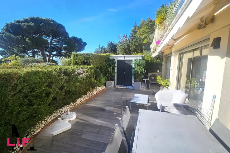 Снаружи: терраса продолжает свою гармонию в приватном саду площадью 40 м² с южной экспозицией, предлагая панорамный вид на острова Лерин и полную приватность. Редкая, уютная и светлая обстановка.