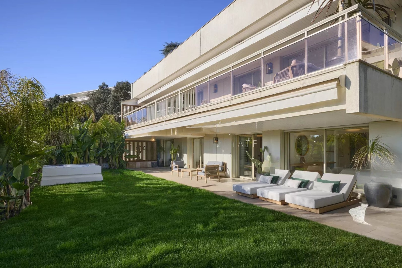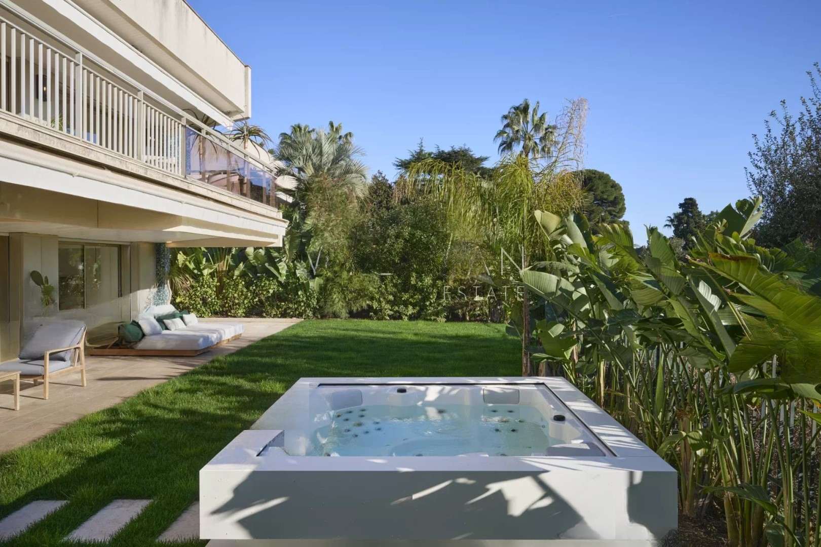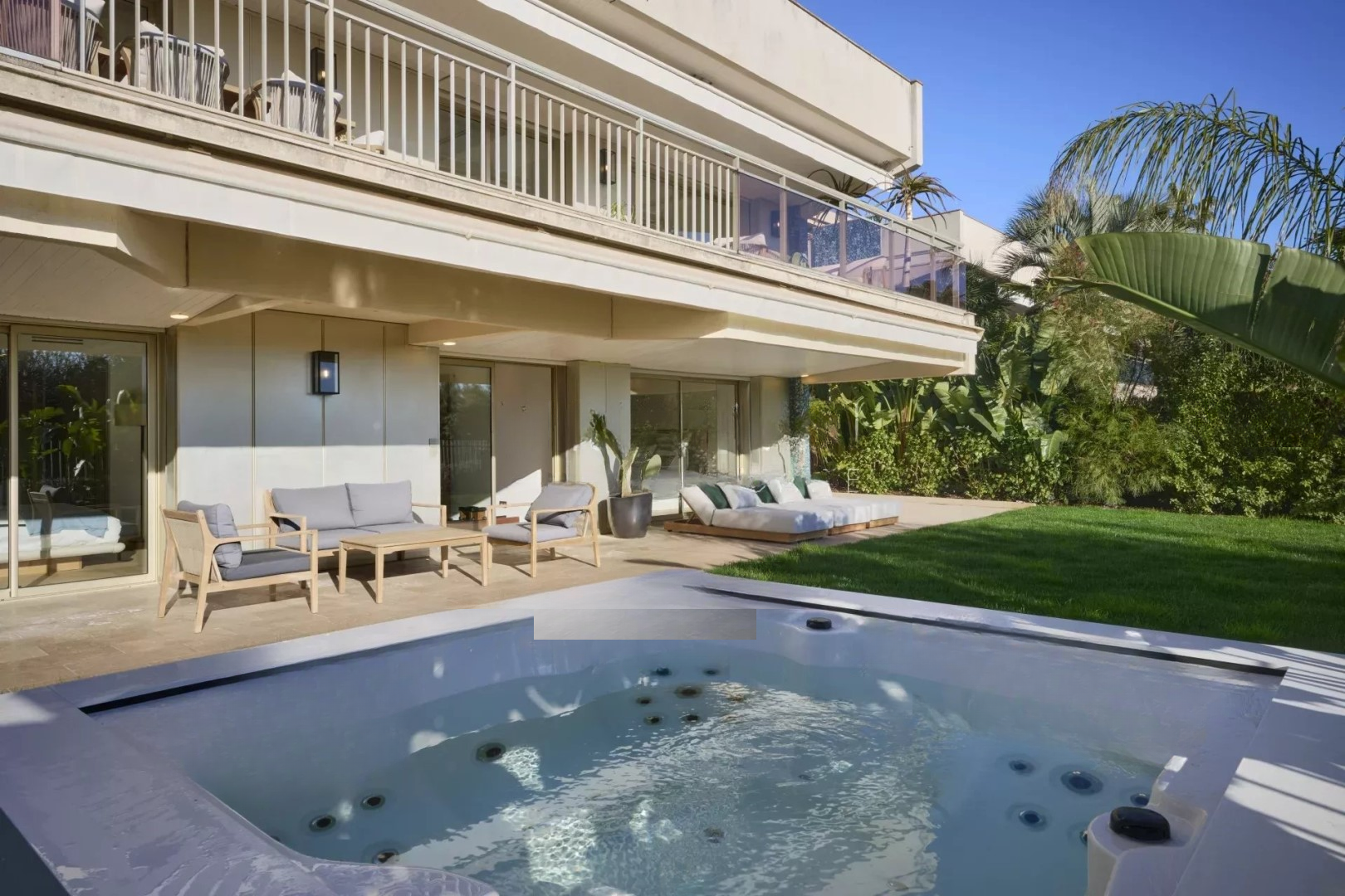 На улице — личный сад с джакузи. Прямой доступ к общей территории позволяет достичь большого парка, бассейна и теннисных кортов. До встречи с охраняемой резиденцией.