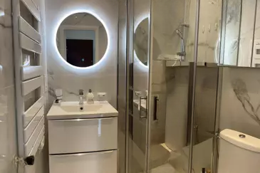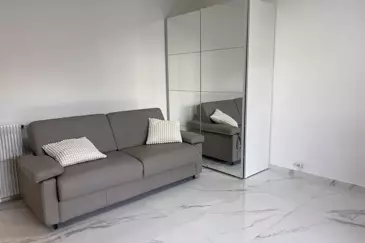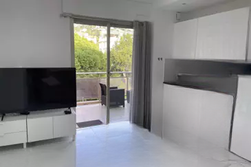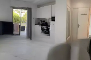 Гостиная с полностью оборудованной и благоустроенной открытой кухней, душевая комната с туалетом, шкафы и терраса, чтобы наслаждаться климатом Канн. ☀️