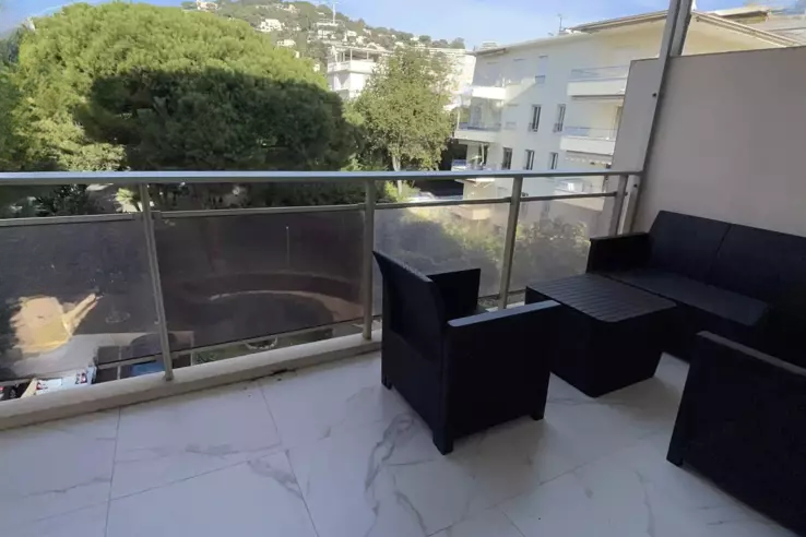 В престижном доме с консьержем, за пляжами Муре Руж, предлагается студия с большой обеденной террасой, выходящей на живописную зелень.