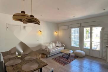 Очень светлый, он включает в себя прекрасную жилую зону, объединяющую гостиную-столовую и кухню американского типа, оборудованную всем необходимым, две смежные спальни, ванную комнату, отдельный туалет и большое кладовое помещение.