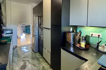 Есть возможность создать третью спальню. Апартамент полностью кондиционирован. Квартира также включает подвал и закрытый гараж.