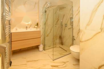 Спальная зона предлагает три красивые спальни, две большие современные ванные комнаты и гостевой туалет. Просторная терраса площадью 32 м², идеальная для приема гостей или расслабления, окружает помещение и предлагает приятный вид на море.