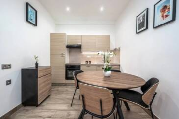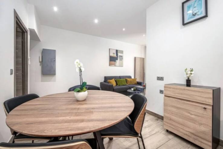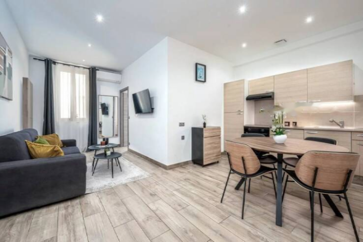 На улице Hoche, в центре Канн, находится эта красивая двухкомнатная квартира, полностью отремонтированная и идеально расположенная. Она включает в себя гостиную, кухню американского типа и спальню с душевой.
