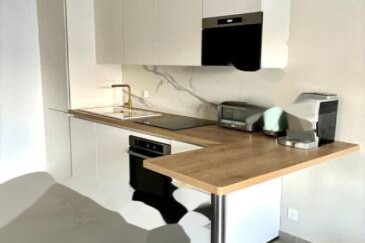Она состоит из светлой гостиной с открытой кухней площадью 30 м², с видом на просторную панораму и без соседей напротив, ориентированной на запад. Ночная зона включает две прекрасные спальни площадью 12 и 14 м², ванную комнату и отдельный туалет.