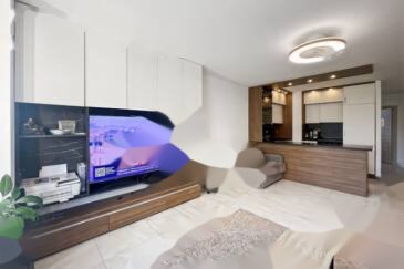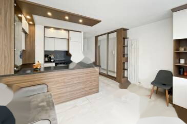 Квартира включает светлую гостиную с полностью оборудованной открытой кухней, душевую с туалетом, а также функциональные шкафы.