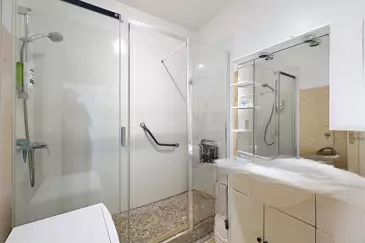 Отдельная обустроенная кухня, спальня с встроенными шкафами, ванная комната с душем и туалет. Также имеется подвал и закрытый гараж.