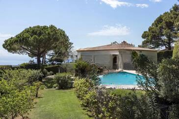 ♂️ Построенная на ровном, полностью озелененном участке площадью 1 915 м², собственность располагает просторными открытыми пространствами, бассейном и закрытым гаражом для двух автомобилей. Это редкое место для жизни, сочетающее в себе очарование, вид на море и полное уединение.