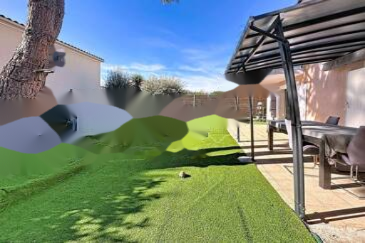 ☀️ Ориентация: юго-восток, для оптимального солнечного освещения. Участок размером 300 кв. м с красивым садом с газоном из синтетической травы для большего комфорта и меньшего ухода, надземный бассейн и площадка для игры в петанк, идеально подходят для отдыха с семьей или друзьями.