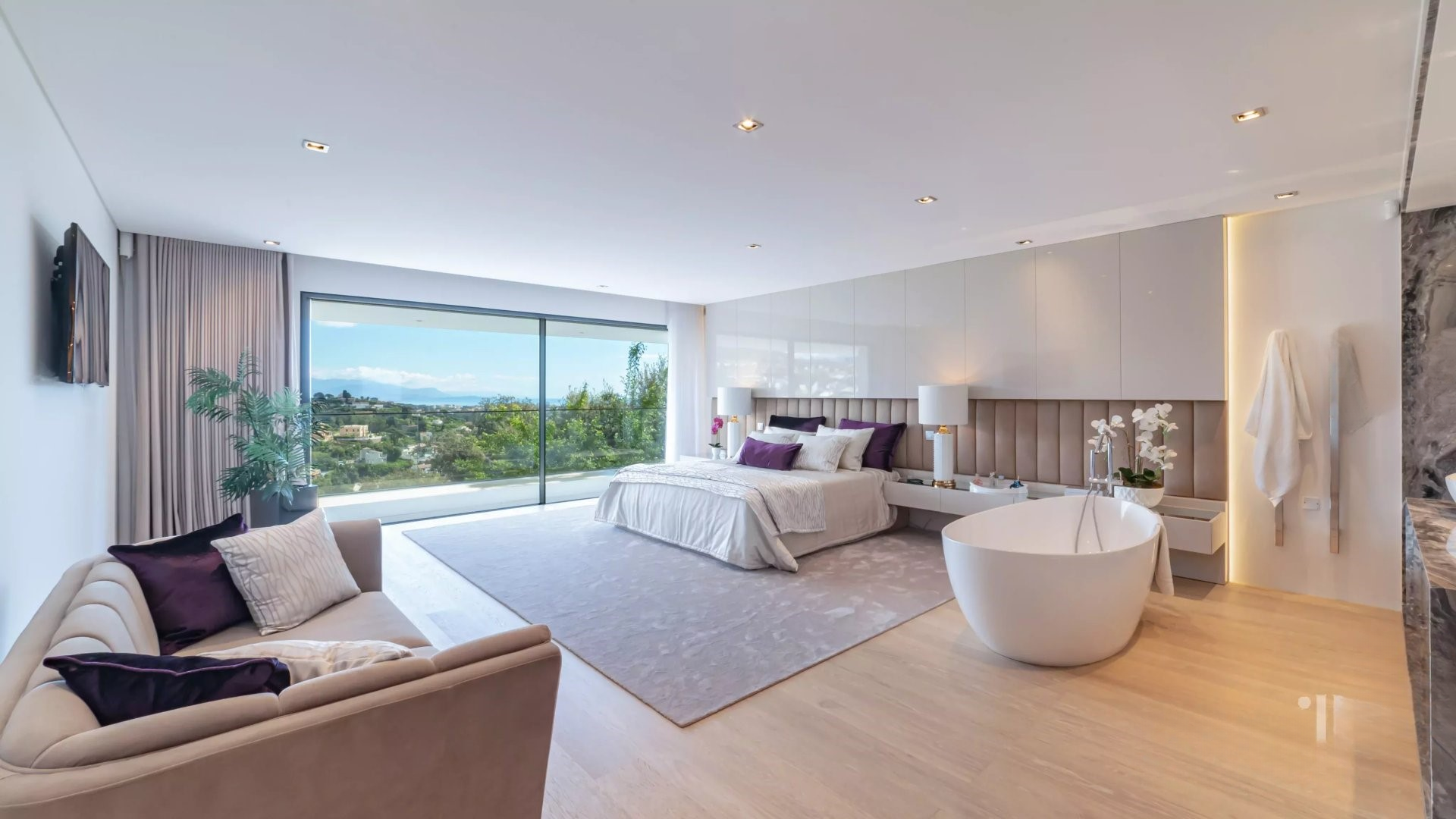 Расположенная на возвышенностях самого престижного района Super Cannes, эта великолепная современная вилла с четкими линиями предлагает фантастический панорамный вид на море и занимает 300 м² на всего двух уровнях.