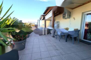 На верхнем этаже находится вторая спальня с шкафом, туалет, полностью оборудованная открытая кухня с закрытым подсобным помещением, а также светлая гостиная, ориентированная на юг, с выходом на просторную террасу площадью 35 м². Терраса оснащена джакузи и открывает прекрасный вид на холмы с частичным видом на море.