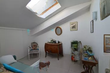 В квартиру ведет красивая прихожая с гардеробом, ванная комната, отдельный туалет и большая спальня, продолжающаяся террасой площадью 12,16 м². На верхнем этаже находится вторая спальня с гардеробом, туалет, полностью оборудованная открытая кухня и светлая гостиная с южной стороны, с выходом на большую террасу площадью 35 м², оснащенную джакузи и с панорамным видом на холмы и морской горизонт.