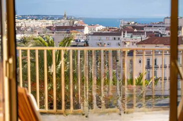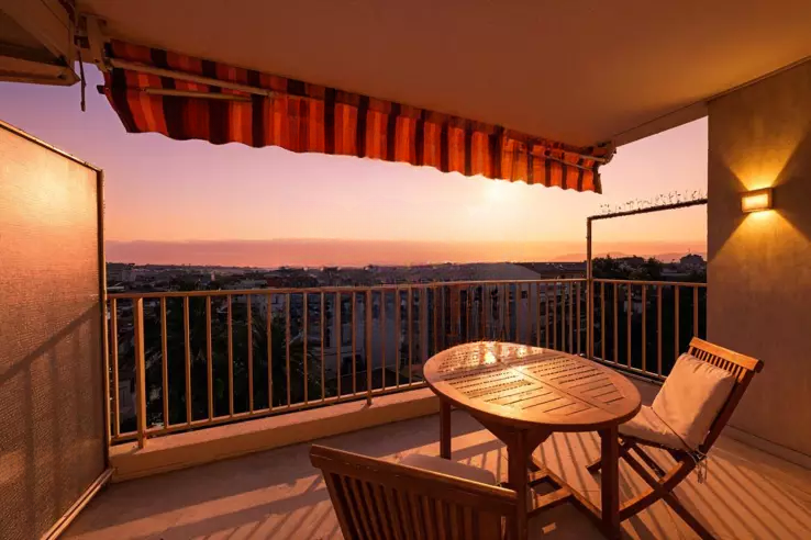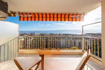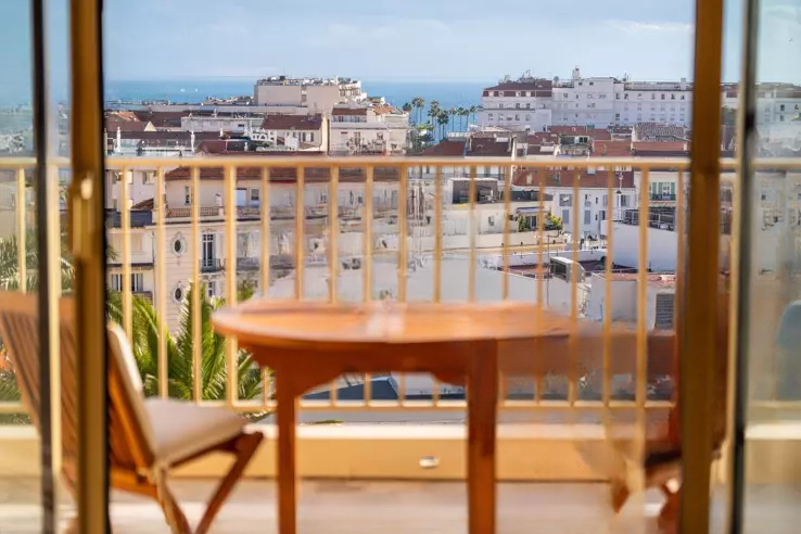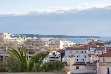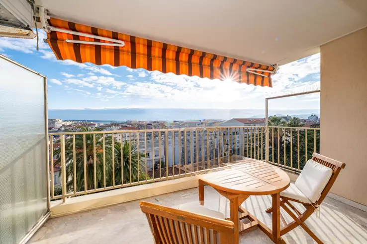 Залитая светом, квартира предлагает исключительный вид: с одной стороны, море, простирающееся до островов Лерин и залива Канн; с другой стороны, на зеленые холмы Калифорнии.