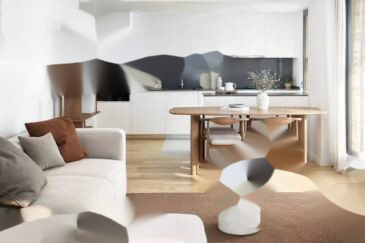 Квартира на последнем этаже площадью 49 кв. м, с просторной гостиной и террасой площадью 25 кв. м с открытым видом.