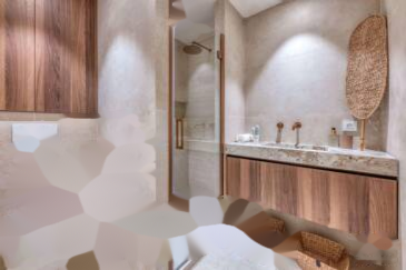 Зона отдыха включает две большие спальни площадью примерно 20 м² и 14 м², каждая со своей ванной комнатой. Западная терраса и восточный балкон позволяют насладиться солнечным светом с утра до вечера.