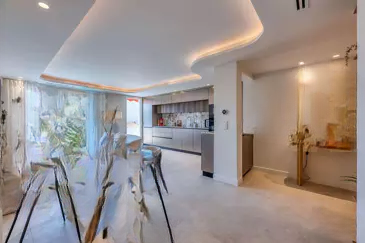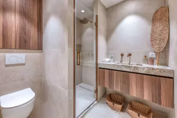 Зона отдыха включает две большие спальни: одна площадью около 20 м², другая около 14 м², каждая со своей душевой комнатой. Западная терраса и восточный балкон позволяют проживать различные моменты дня, сталкиваясь с утренним светом и вечерней нежностью.