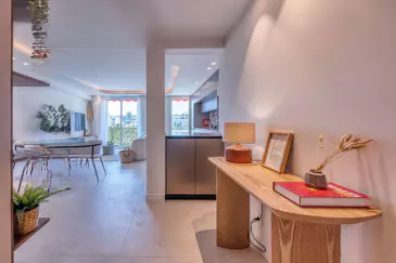 Расположена на 3-м и предпоследнем этаже небольшого здания с лифтом, эта квартира площадью около 80 м² была полностью отремонтирована в 2025 году. Дизайн квартиры выдержан и гармоничен: чистые линии, сбалансированные объемы и материалы, выбранные за их непреходящие качества.