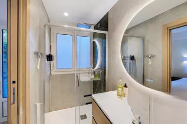 Квартира полностью кондиционирована с канальной системой, оснащена двойным остеклением с электрическими роллетами, сигнализацией и полностью освещенной террасой/садом.