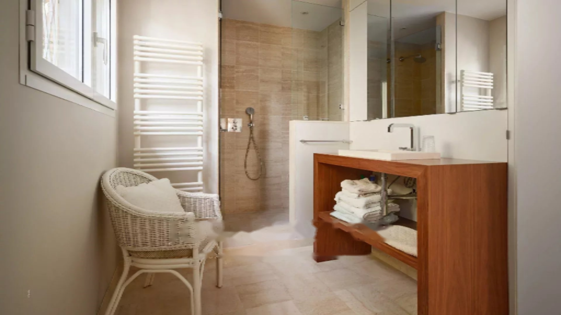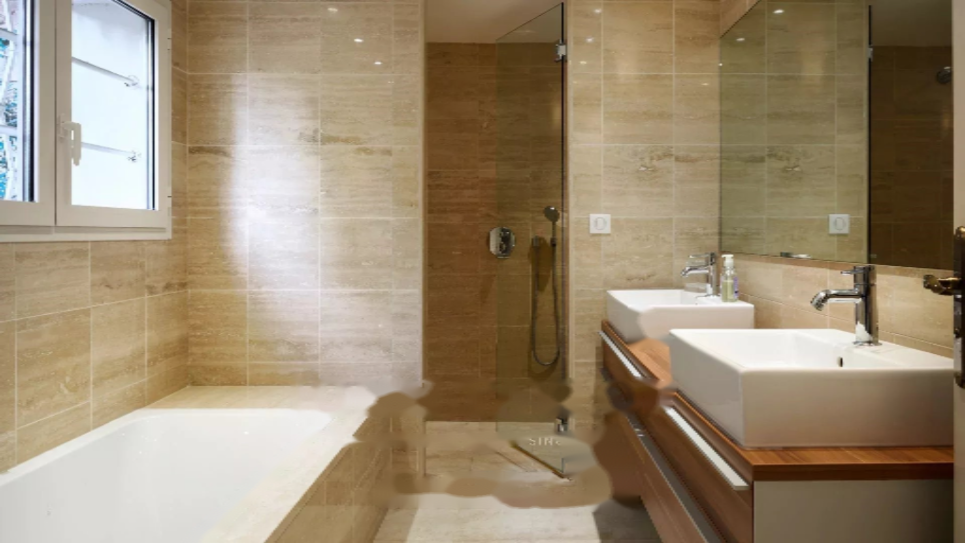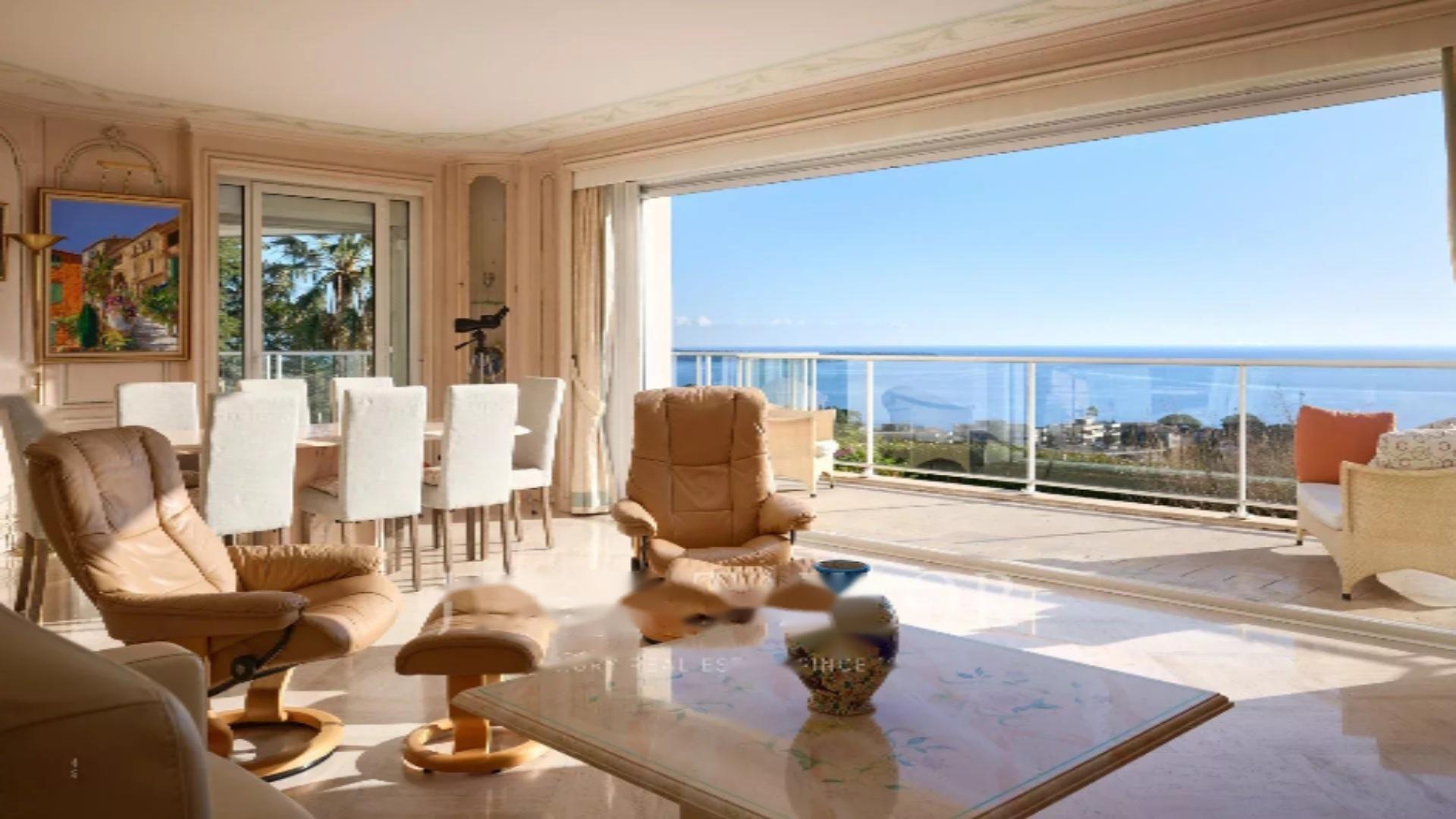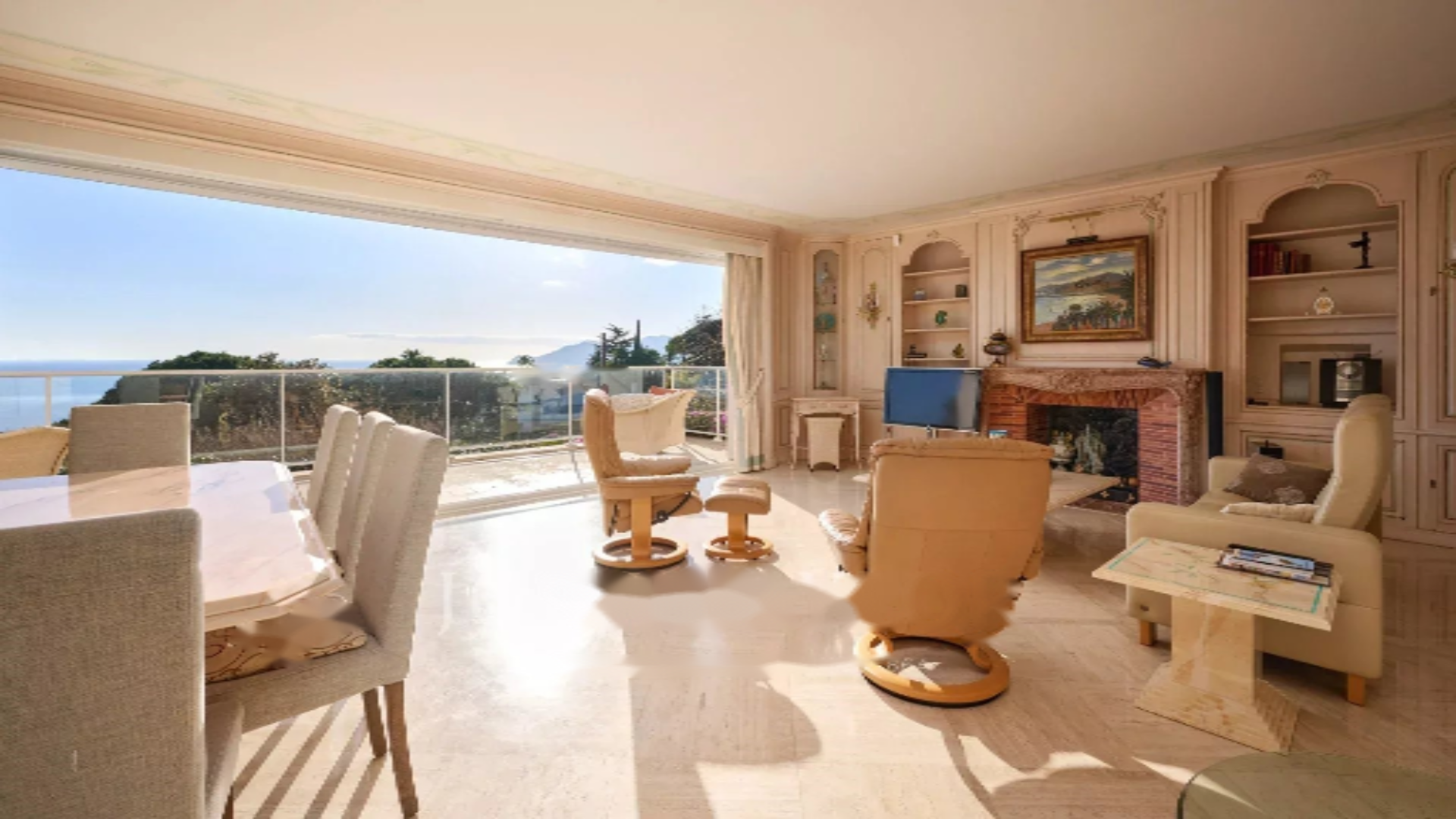 Sea front location, 5 rooms, west facing, construction year 1958, living room, unfurnished, 2 bathrooms, 4 bedrooms, individual reversible air conditioning heating, 3 toilets, 2 shower rooms