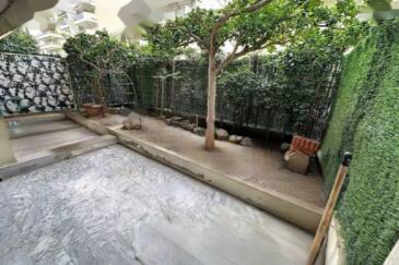Тут есть просторная гостиная 23,36 кв.м с большим встроенным шкафом, а также красивая спальня. Оба помещения имеют выход в сад. Вы также найдете большую гардеробную, ванную комнату и отдельную оборудованную кухню.