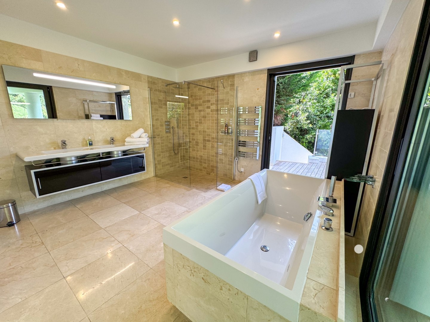 Эта современная недвижимость, расположенная в одном из самых востребованных районов Канн, предлагает около 500 м² жилой площади в живописном парке площадью 5 000 м². Основной зал и бассейн открывают вид на море, создавая элегантную и привилегированную атмосферу.