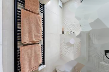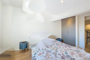 На первом этаже находятся гостиная с встроенным шкафом, кухня в американском стиле с полностью оборудованным центральным островом, гостевой туалет. На верхнем этаже: 2 спальни со шкафами, душевая комната/туалет.
