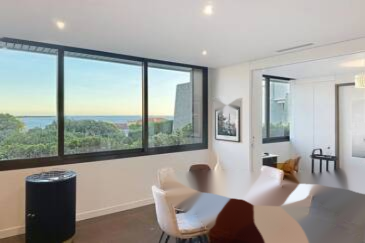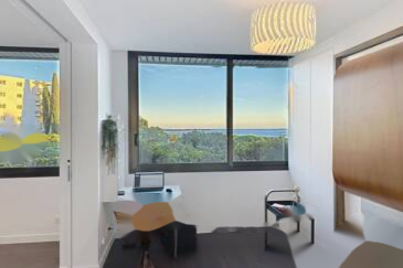 Просторное, более 60 м², жилое помещение, залитое светом и предлагающее панорамный вид на море из всех комнат. Кухня современная, полностью оборудованная, открыта на гостиную. ️ Три элегантные спальни, включая основную спальню; две изысканные ванные комнаты; два туалета; отдельная прачечная. Внутреннее парковочное место, дополненное коллективными парковками в резиденции.